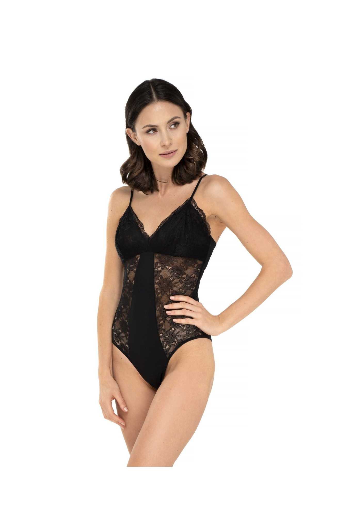Le body noir est un accessoire sensuel mais élégant qui peut fonctionner dans de nombreuses situations différentes. D'une base sous un chemisier à un élément autonome en duo avec une veste, tout dépend de votre imagination. Parfait comme accessoire de chambre à coucher. Ce body est fabriqué en polyamide doux, possède des bonnets souples, une fermeture à crochets à l'entrejambe et des bretelles fines et réglables. Les bonnets sont fabriqués en tissu lisse et couvrant. Les côtés sont faits d'une magnifique dentelle florale.
