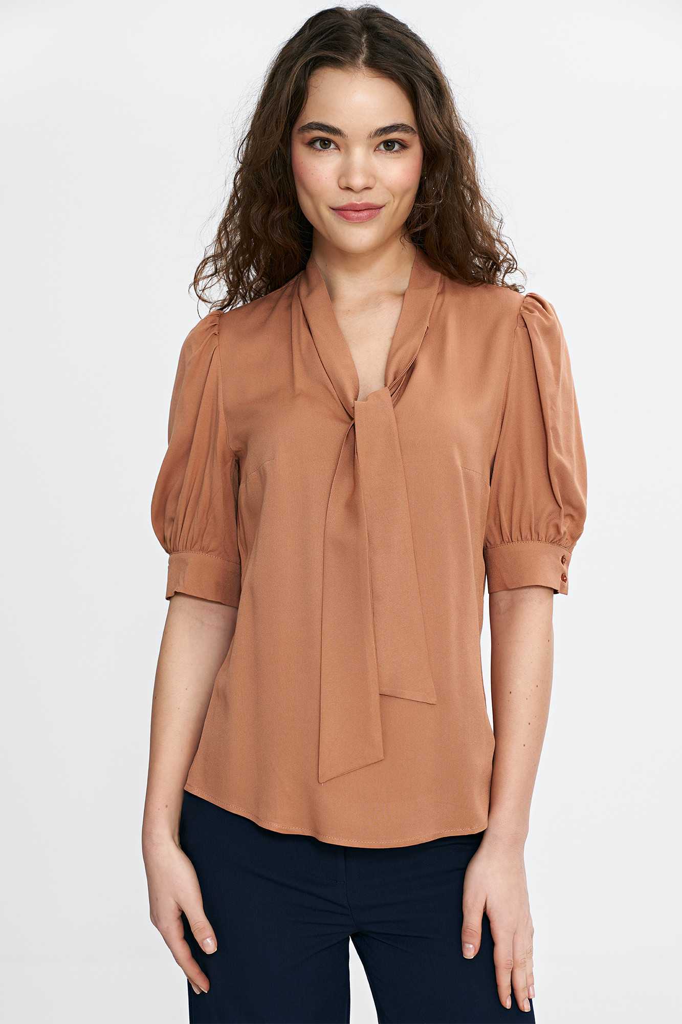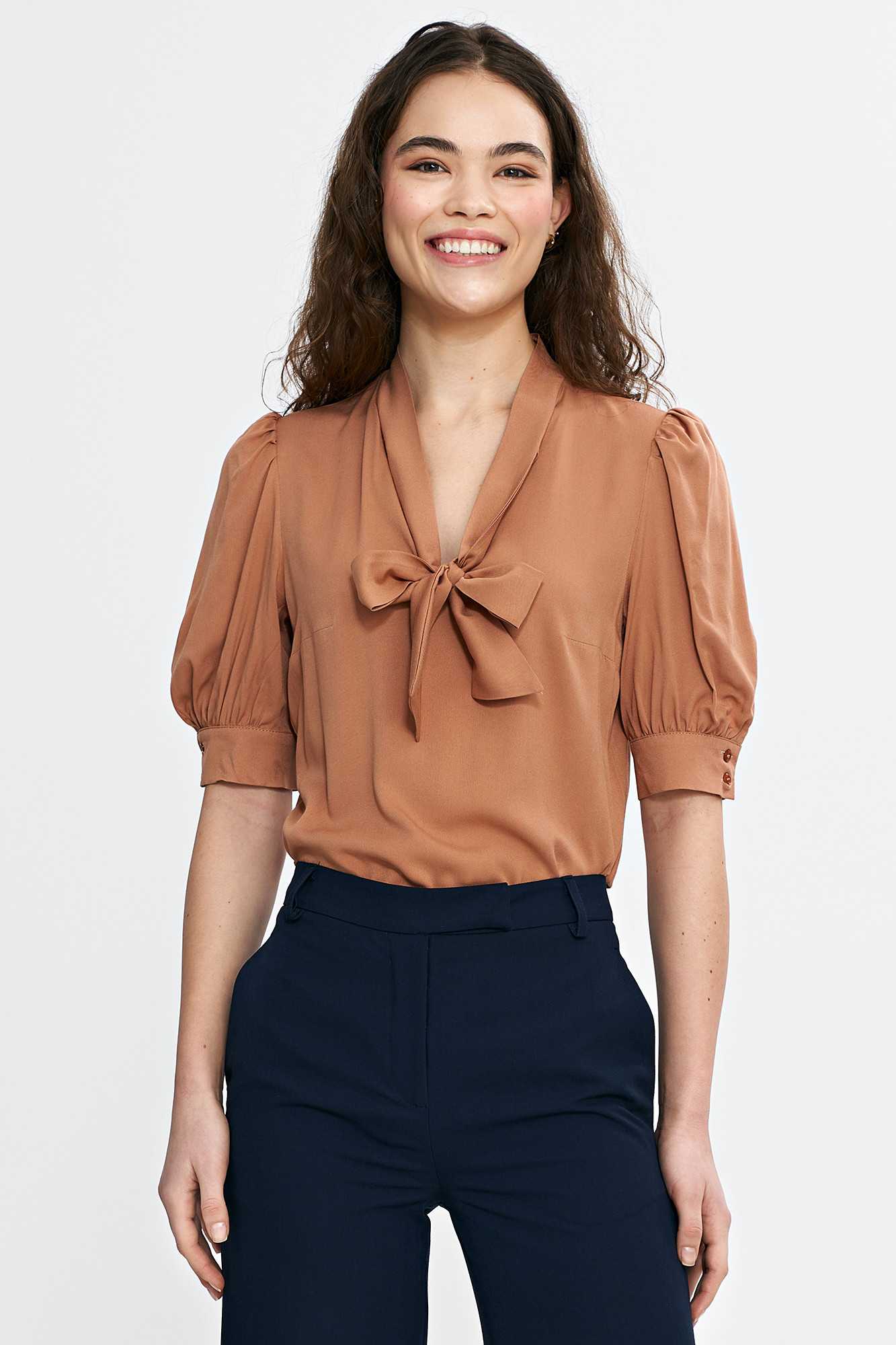 Chemisier à col lavallière - caramel - nife