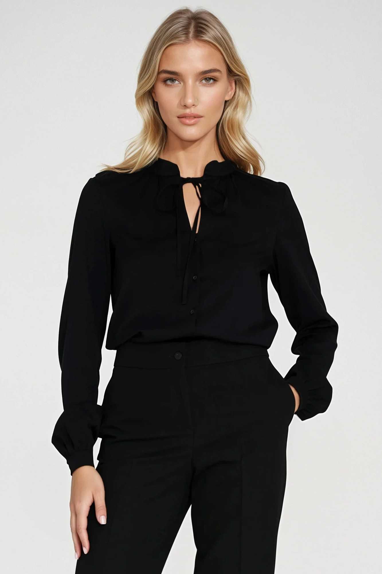Chemisier noir à nouer au cou - nife