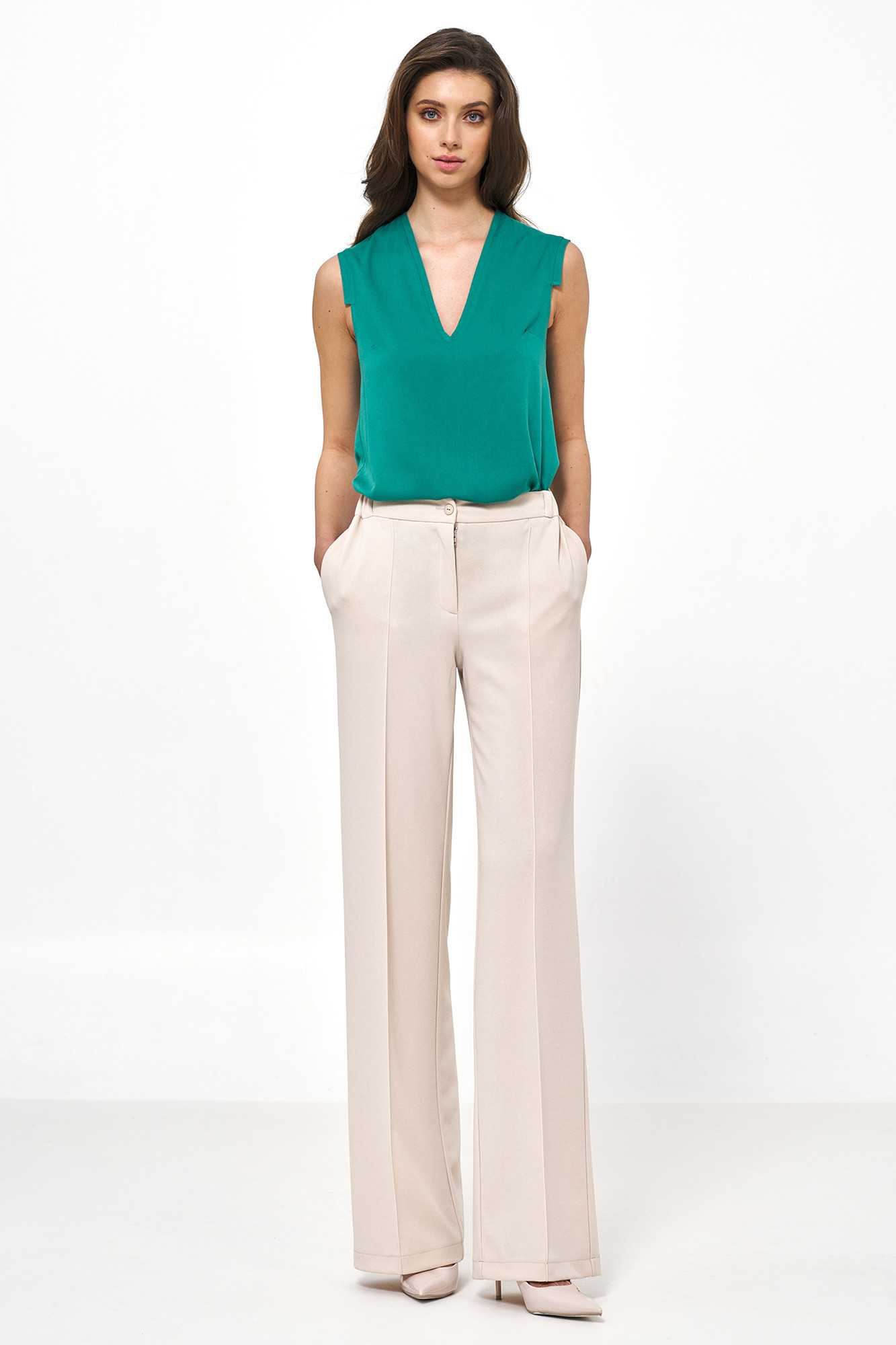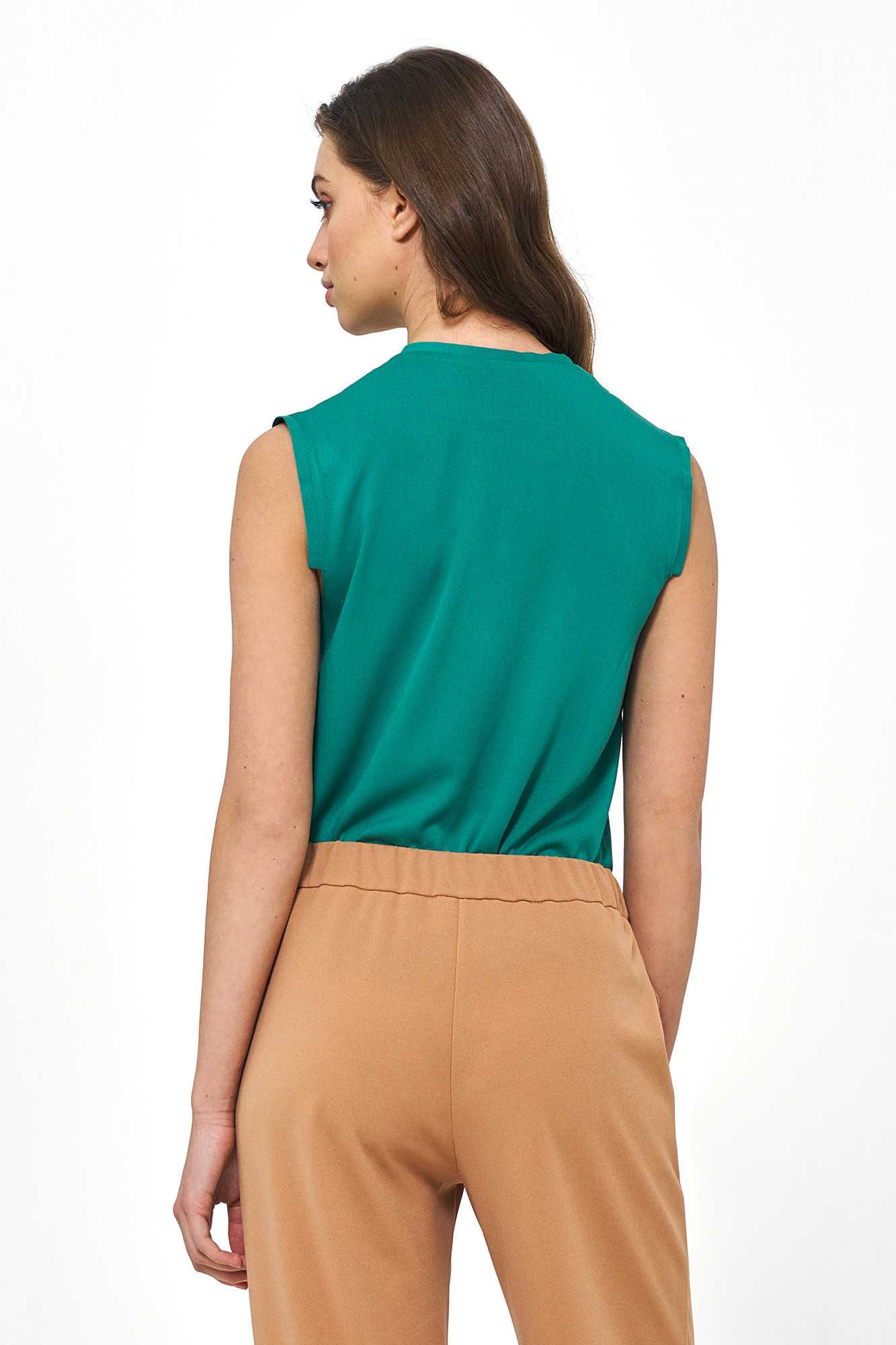 Ce chemisier en viscose douce est la base idéale de vos tenues décontractées au bureau, mais pas seulement. Il se marie à merveille avec des pantalons cigarette, des jupes taille haute et des jeans classiques. Sa coupe ample et sans manches, ainsi que son col en V, lui confèrent une allure décontractée. Sa matière assure un confort optimal tout au long de la journée ! Composition : 100 % viscose. Le mannequin sur la photo mesure 1,76 m et porte une taille 36.
