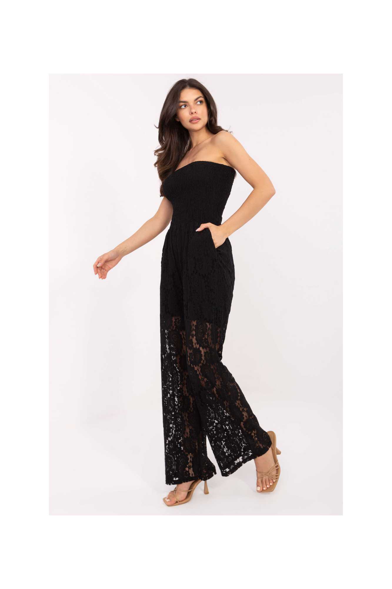 Élégant et féminin, cette combinaison sans manches est le mélange parfait entre le confort quotidien et l'élégance pour les occasions spéciales. Fabriqué à partir d'un mélange léger de coton et de nylon, il assure un confort de port et un look subtil. Son motif ajouré et ses finitions en dentelle lui donnent un caractère romantique, tandis que son décolleté rectangulaire met joliment en valeur la ligne du cou et des épaules. Le modèle est doublé pour plus de confort. La combinaison a des jambes longues et amples qui donnent de la légèreté et de l'élégance à la silhouette. Sans fermeture, il est facile à enfiler, et les poches latérales ajoutent une touche de praticité. C'est le choix idéal à la fois pour tous les jours et pour des sorties plus habillées, féminines, confortables et incroyablement stylées.