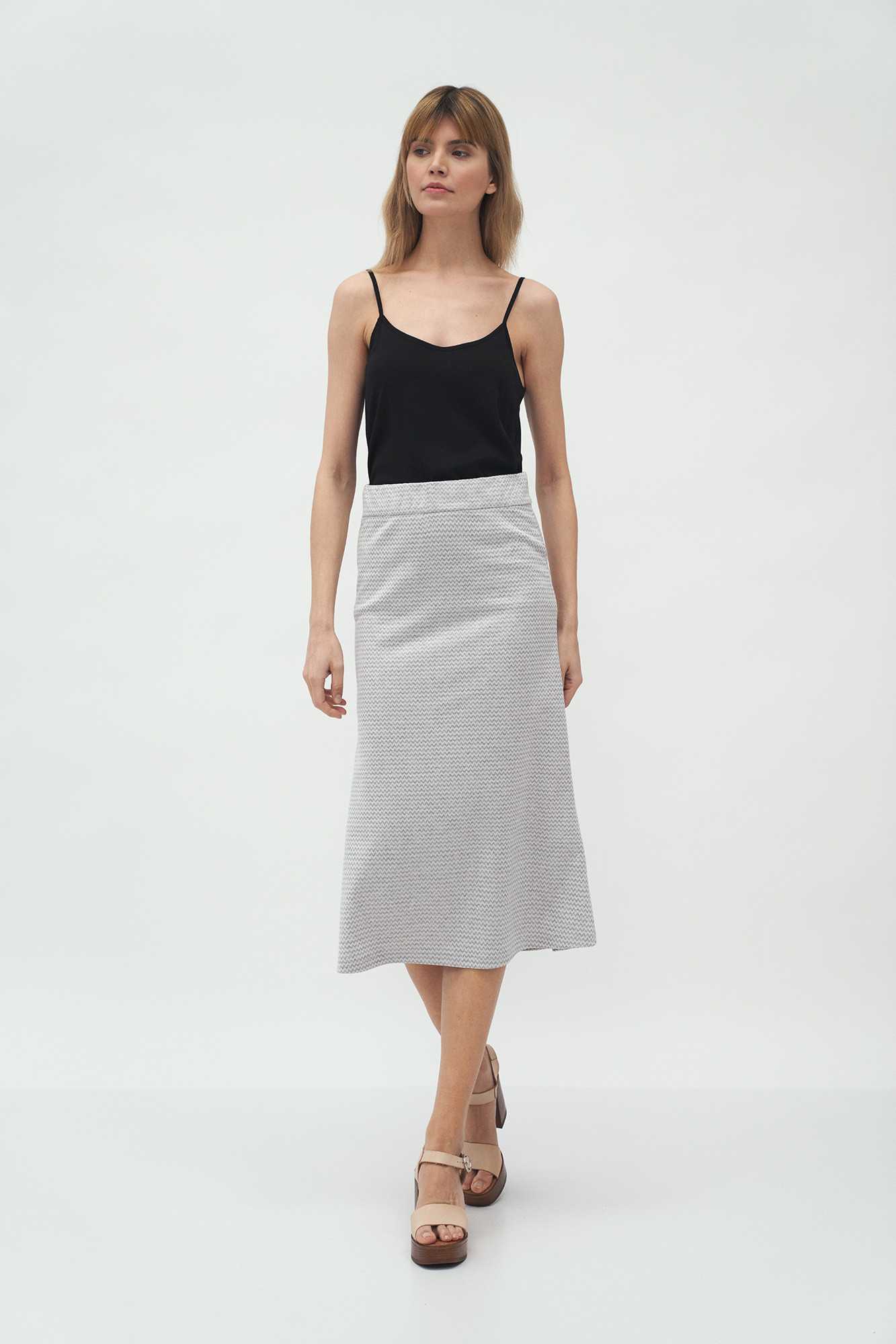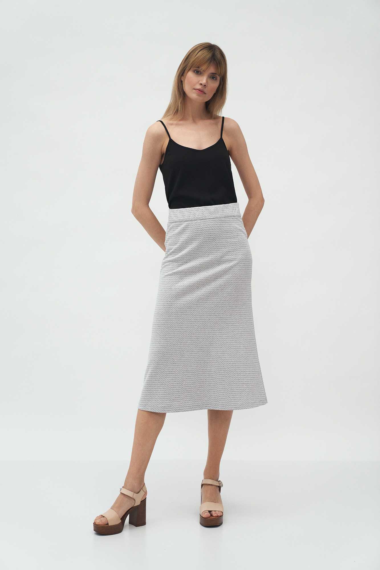 La jupe midi est la base de nombreuses tenues. Nous vous présentons un modèle en maille fine, idéal pour le printemps. Ajustée à la taille et aux hanches, elle s'évase légèrement à l'ourlet. Sa texture la rend facile à associer ! Portez-la avec un t-shirt en coton et des baskets, ou avec une chemise blanche classique et des talons. Un modèle intemporel, un incontournable du printemps 2021 ! Composition : 70 % viscose, 26 % polyester, 4 % polyuréthane. Le mannequin mesure 1,77 m et porte une taille 36.
