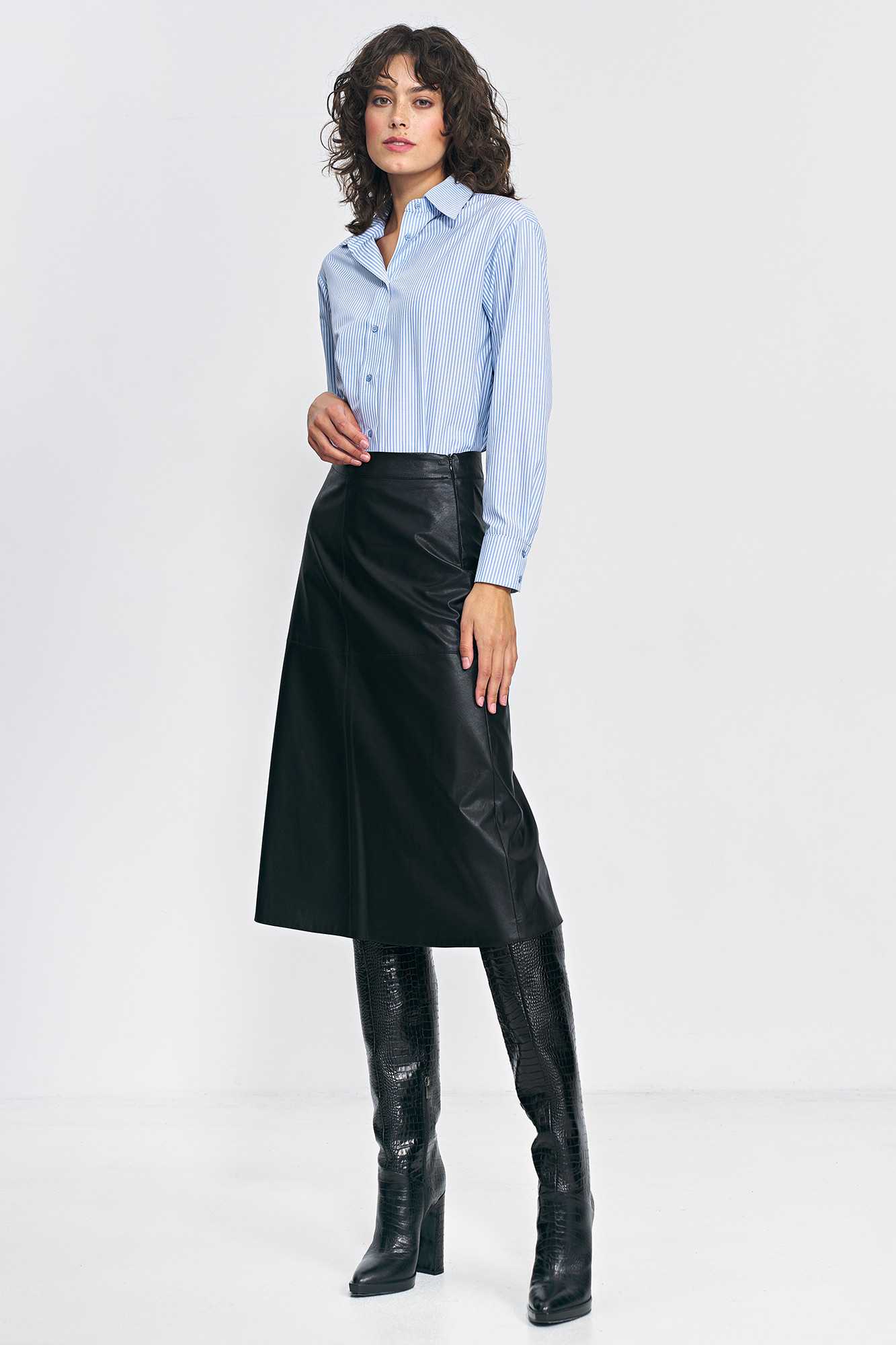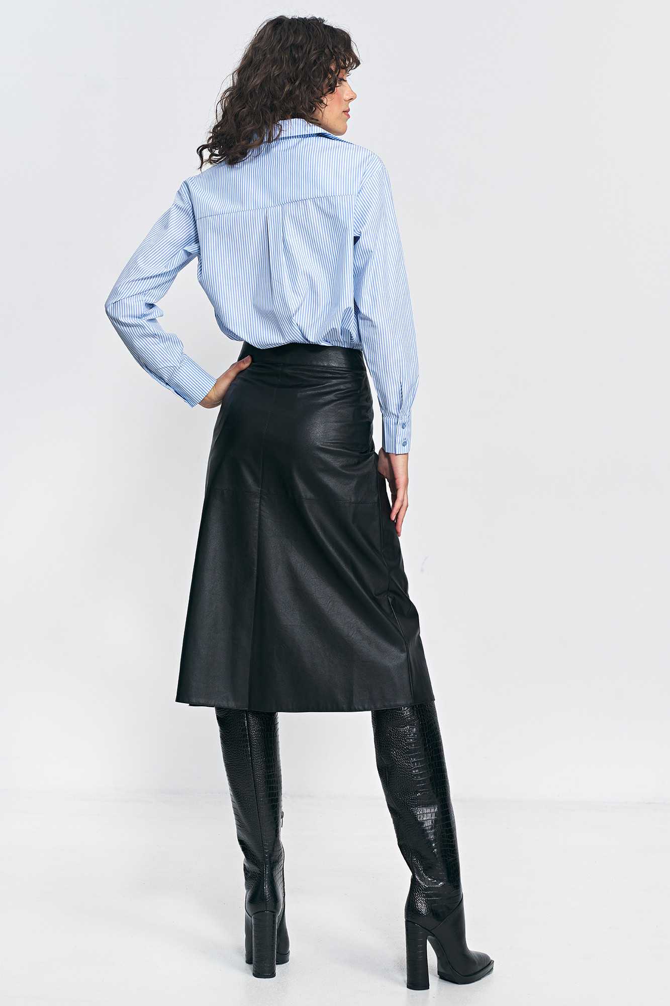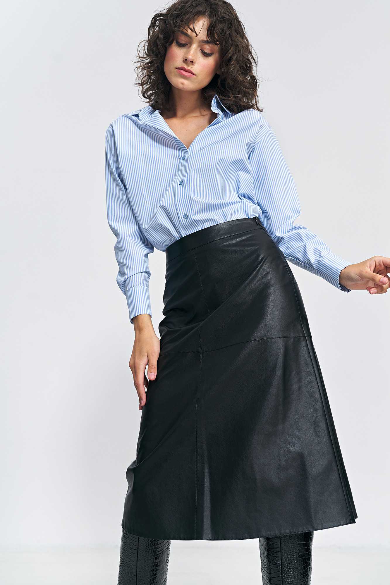Jupe trapèze noire en cuir écologique - nife
