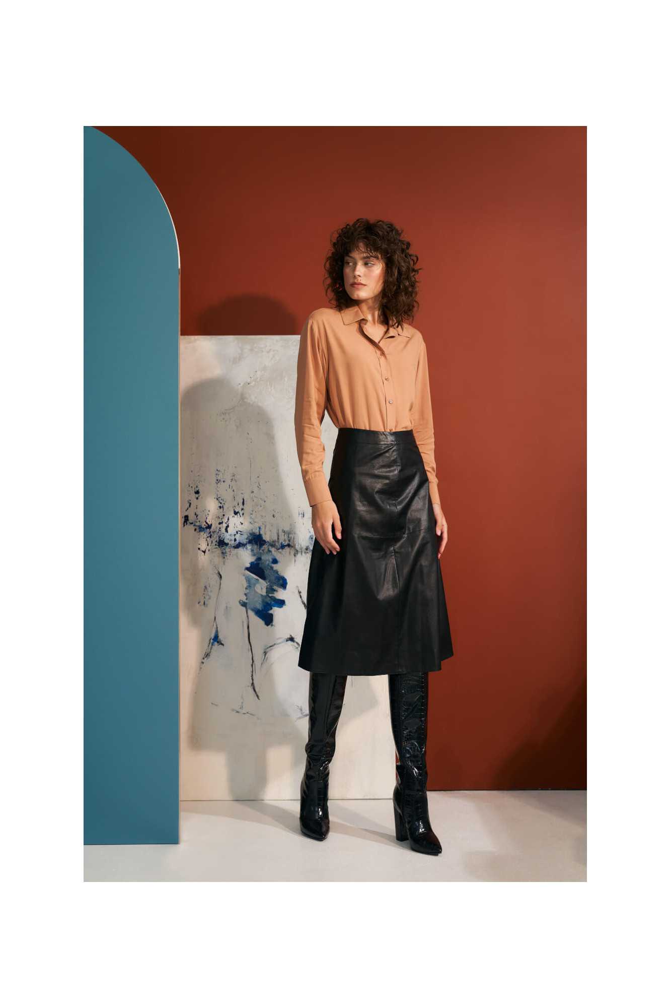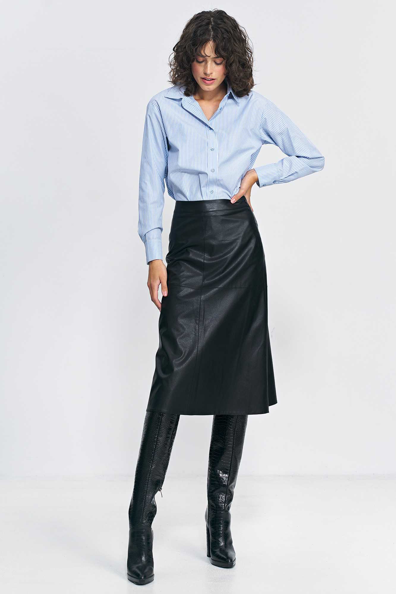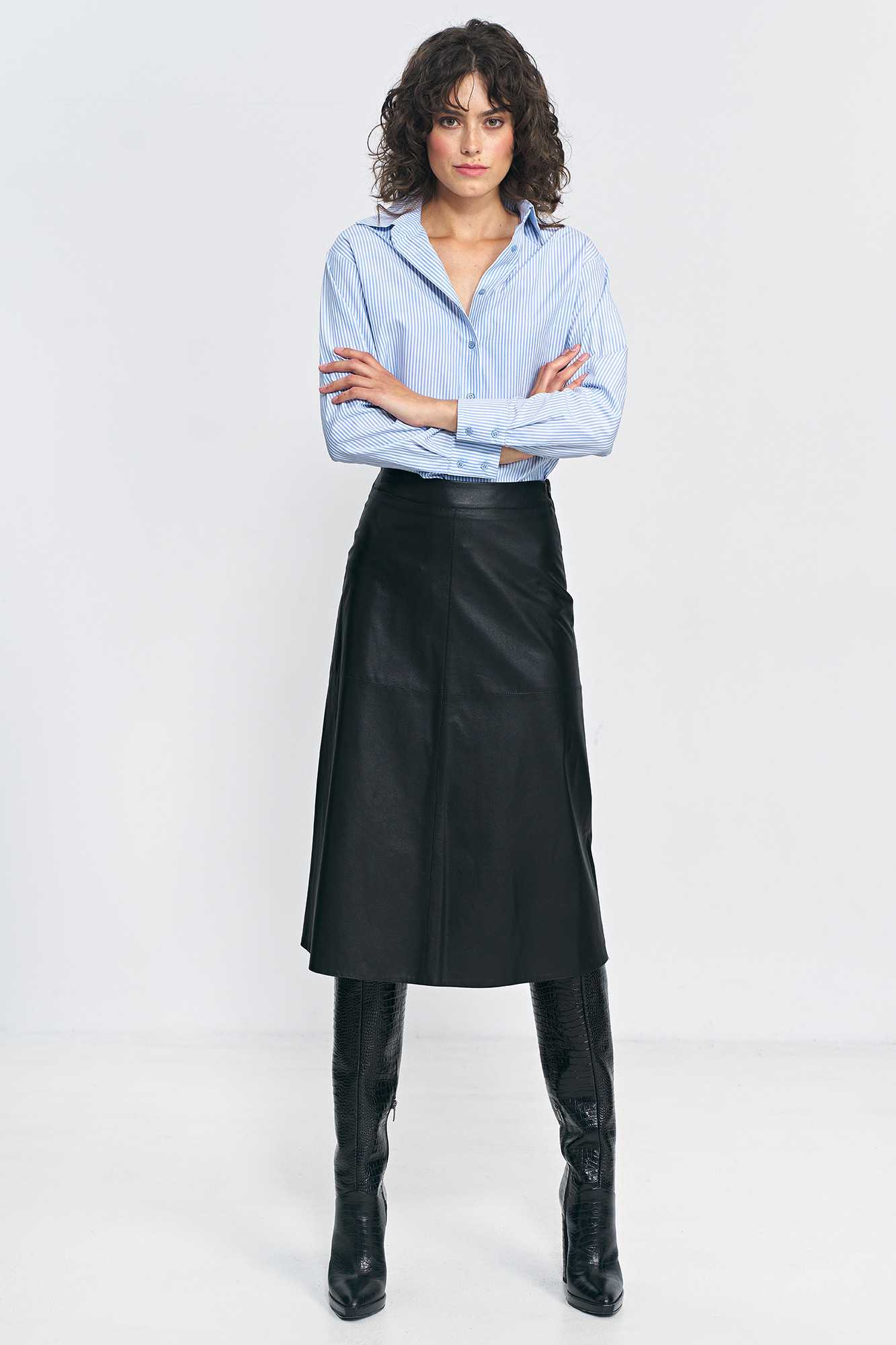 Jupe trapèze noire en cuir écologique - nife
