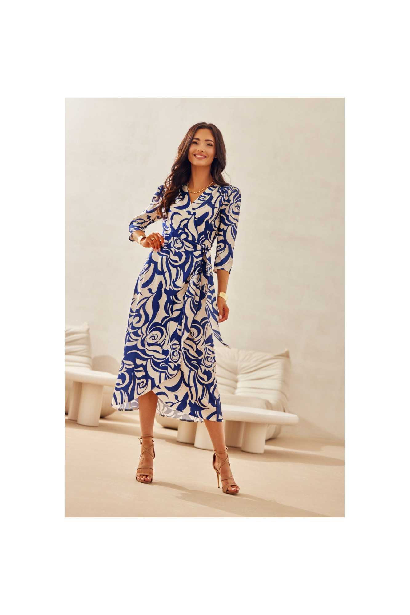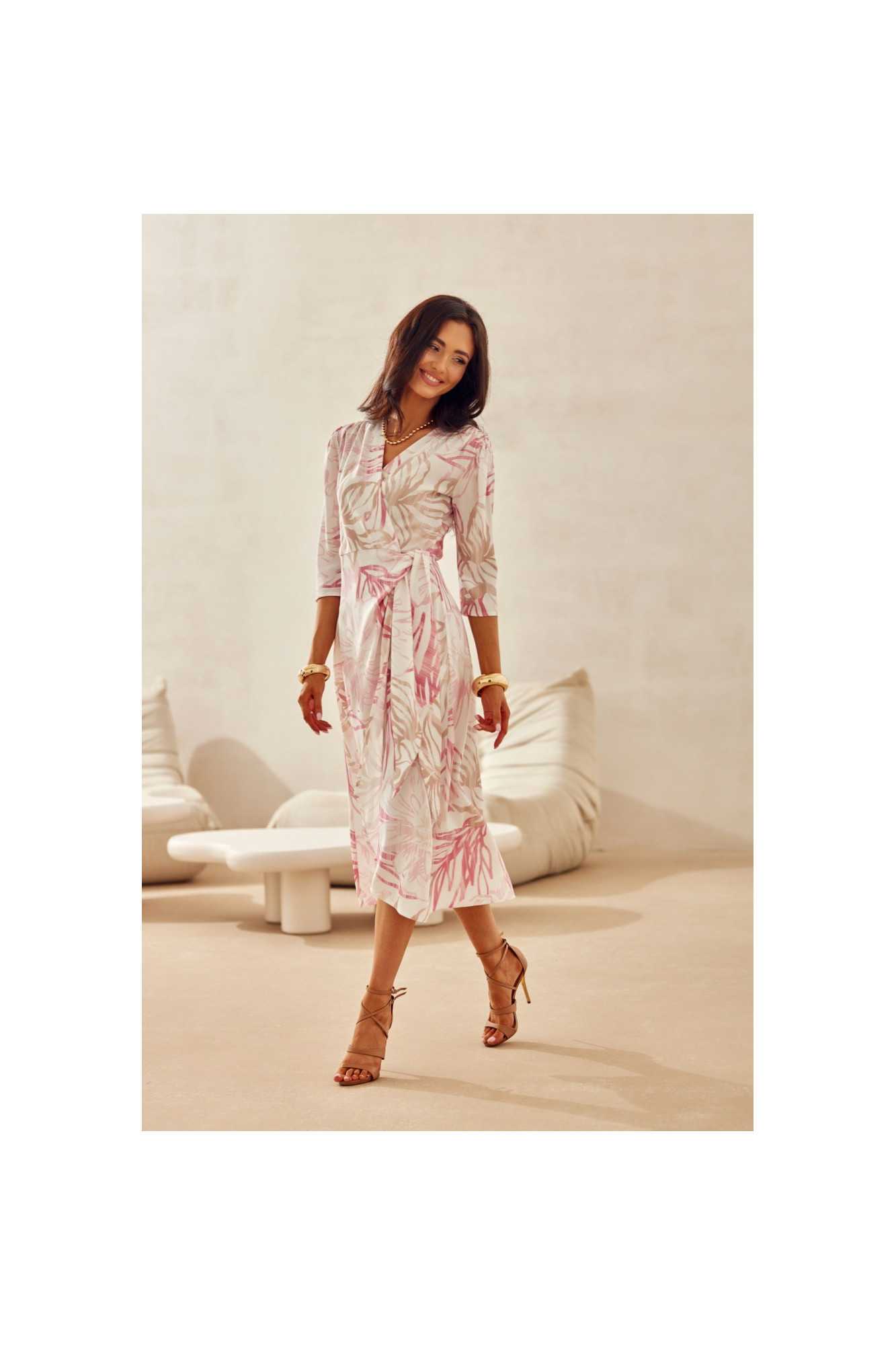 Une attention particulière est portée à la double ceinture nouée , qui permet à la robe d'épouser parfaitement la silhouette , modelant les formes féminines et soulignant les proportions. Les manches ¾ apportent de la légèreté à l'ensemble et en font un modèle idéal pour les journées plus chaudes comme pour la mi-saison. La robe Mirella sera parfaite pour un mariage, une fête ou toute autre occasion où vous recherchez élégance et confort. Associée à des talons hauts classiques et des bijoux, elle créera une allure gracieuse et chic qui ne manquera pas d'attirer les regards.