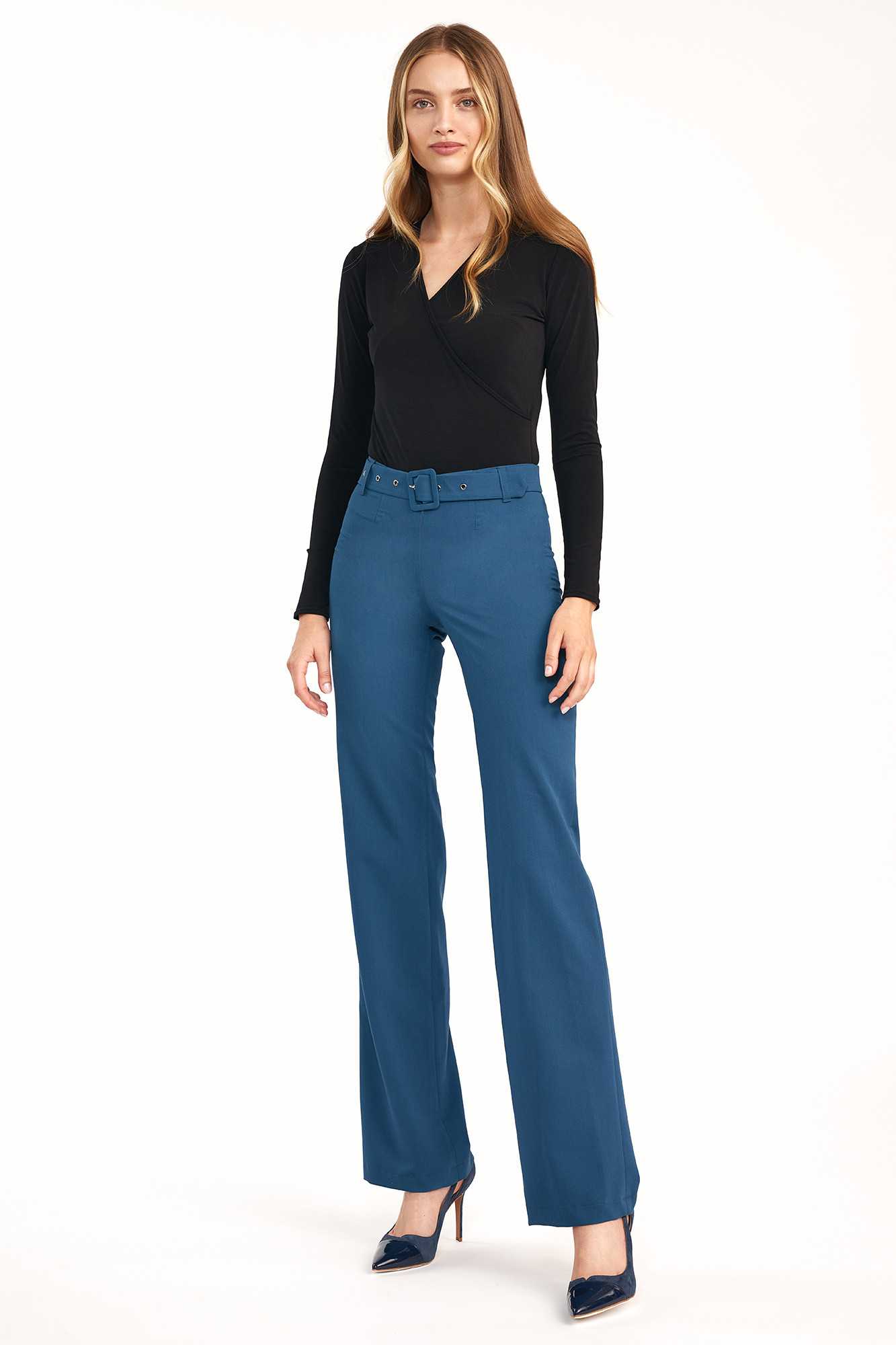 - Taille haute qui allonge la silhouette