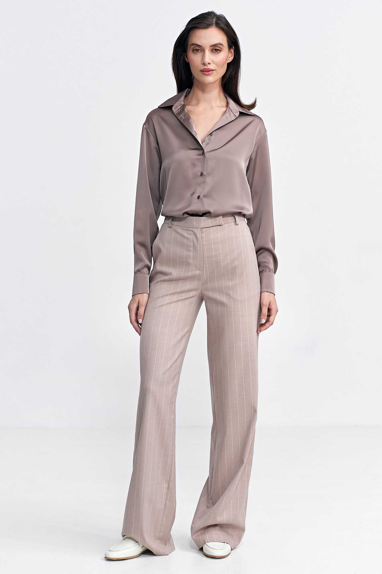 Pantalon bootcut à bouton dissimulé, finitions côtelées - beige - nife