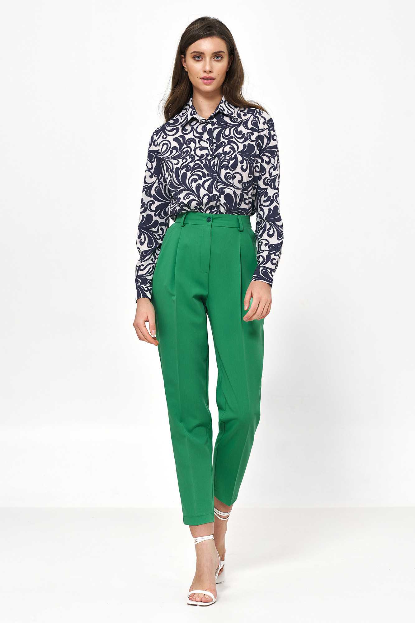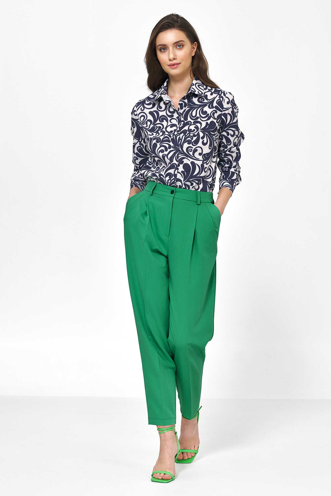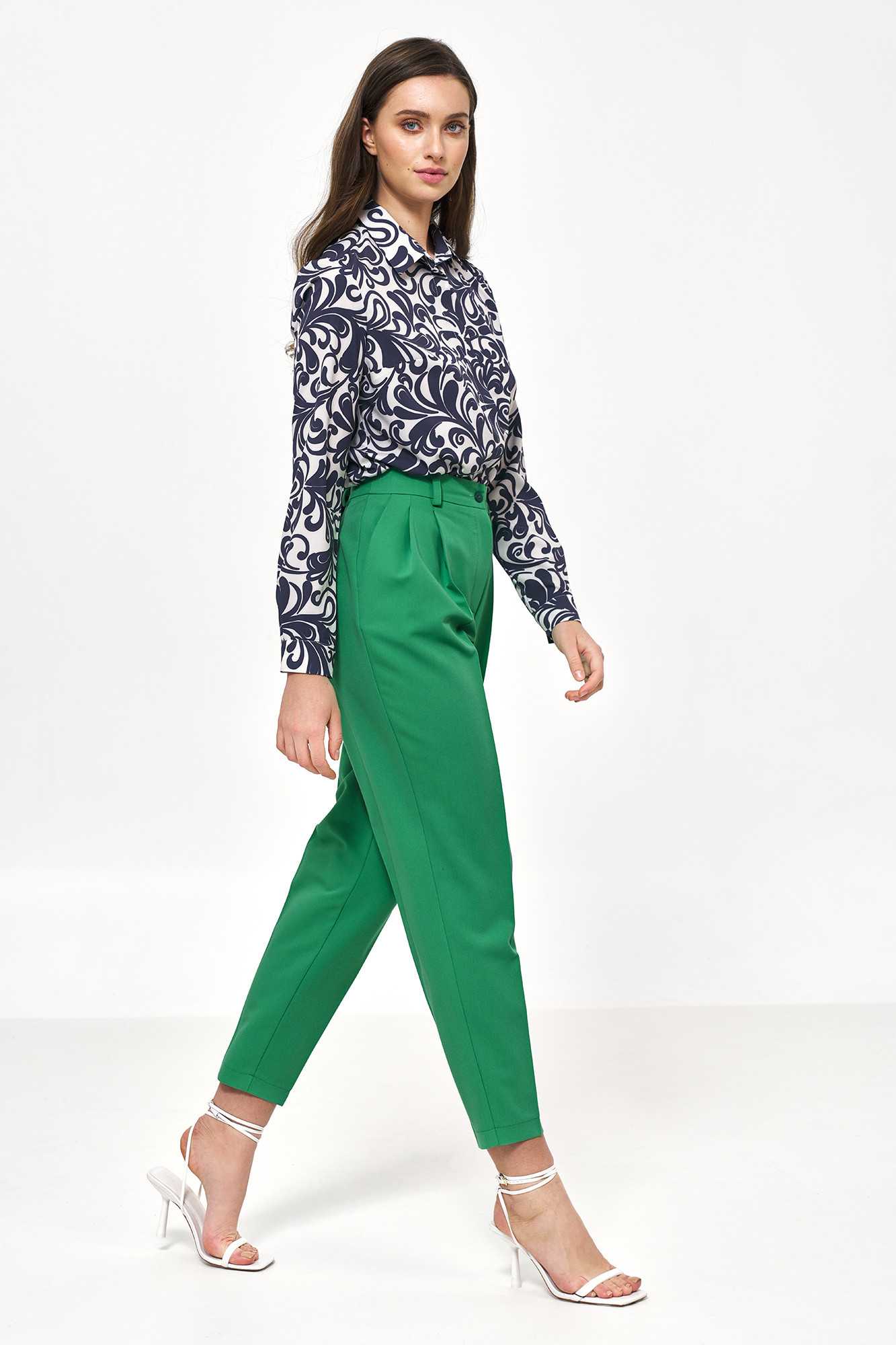 Le pantalon bouffant taille haute est une pièce polyvalente idéale pour composer une tenue de bureau. Il se marie parfaitement avec une chemise blanche et un blazer court, pour un tailleur élégant. Ce pantalon est confectionné dans un mélange de viscose et possède des poches latérales pratiques. Composition : 74,8 % polyester, 23,1 % viscose, 2,1 % élasthanne. Le mannequin mesure 1,77 m et porte une taille 36.
