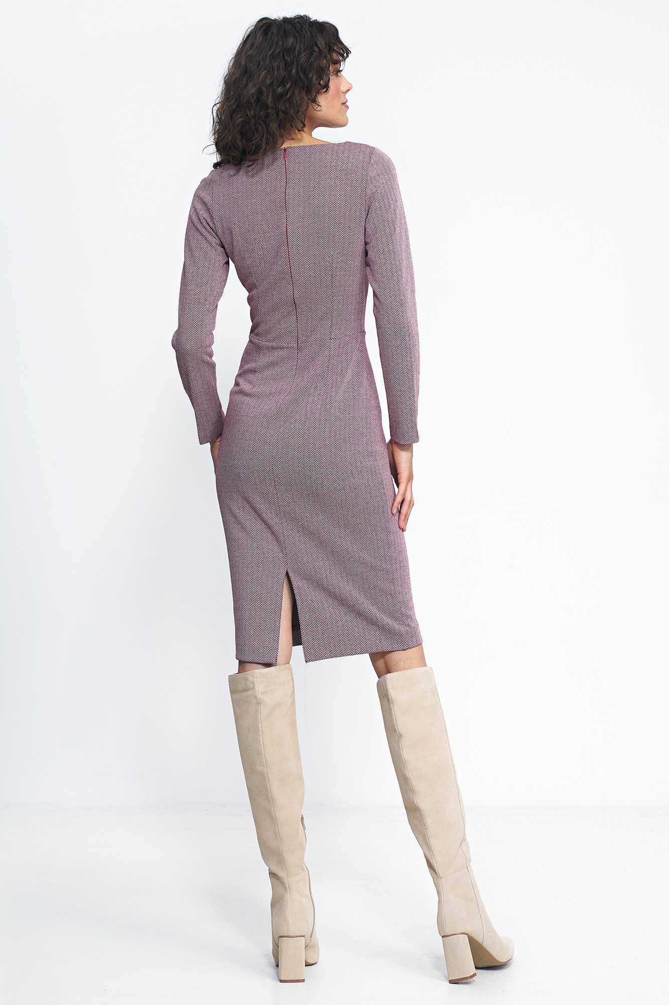 Une robe élégante en tissu doux au toucher, ornée de plis à l'encolure. Cette robe met parfaitement en valeur la silhouette féminine. Une option idéale et confortable au quotidien, parfaite pour le bureau. Non doublée, coupe ajustée, fermeture éclair au dos, fente au dos, manches longues. Composition : 65 % viscose, 30 % polyester, 5 % polyuréthane. Le mannequin mesure 1,76 m et porte une taille 36.