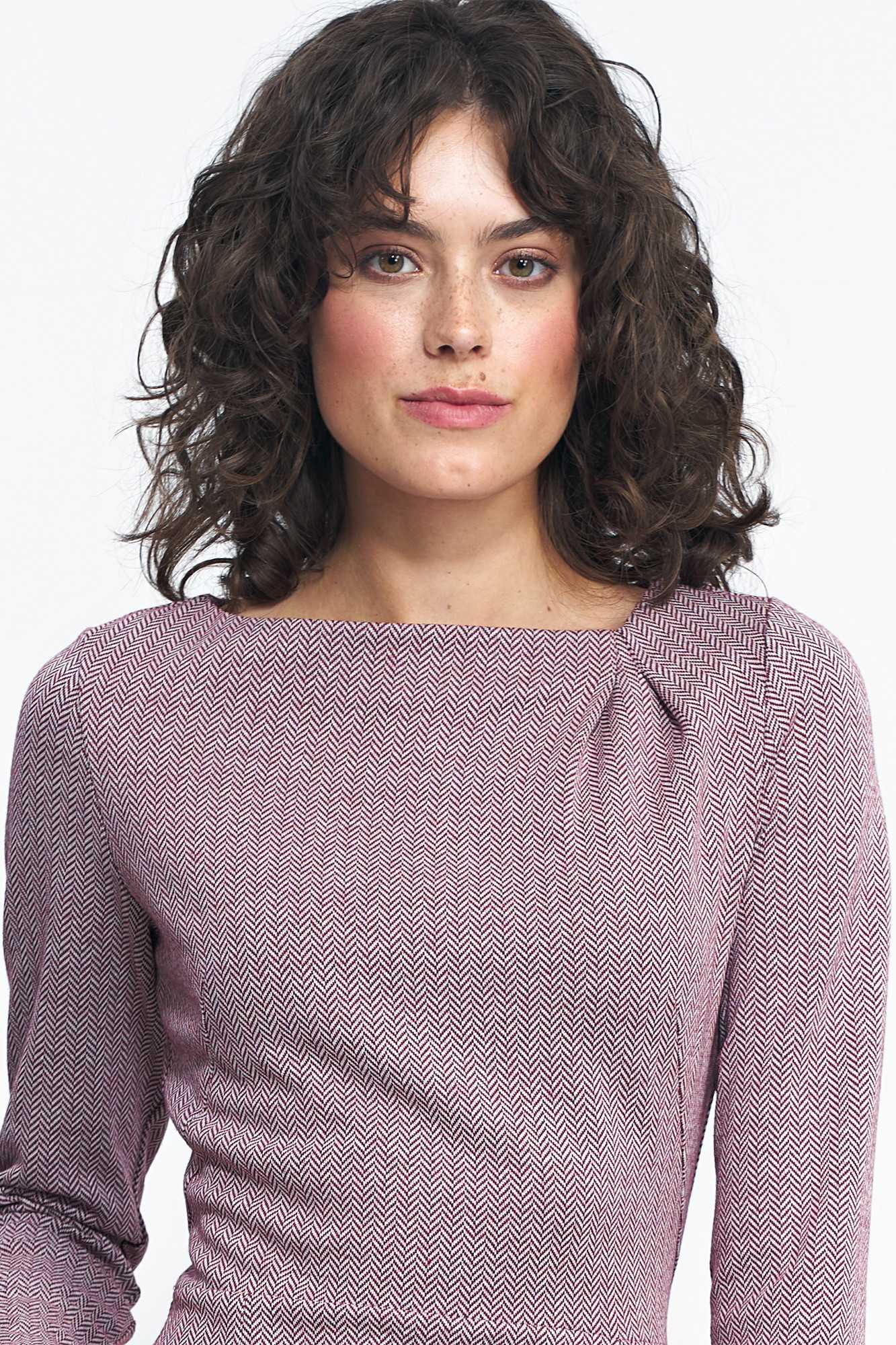 Robe bordeaux à chevrons avec plis à l'encolure - nife