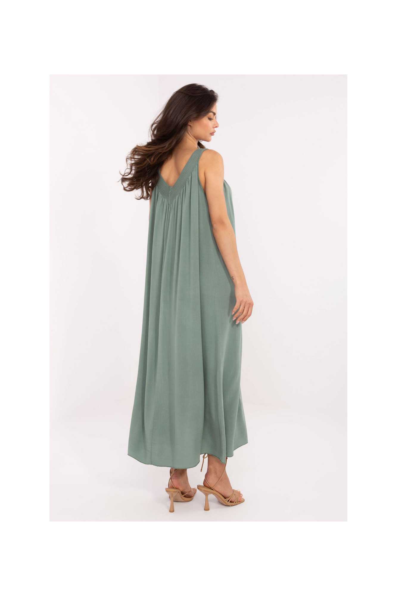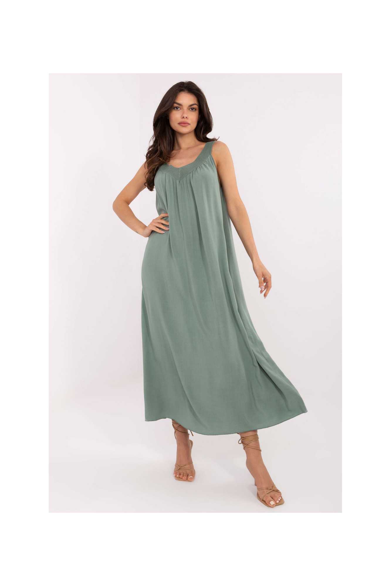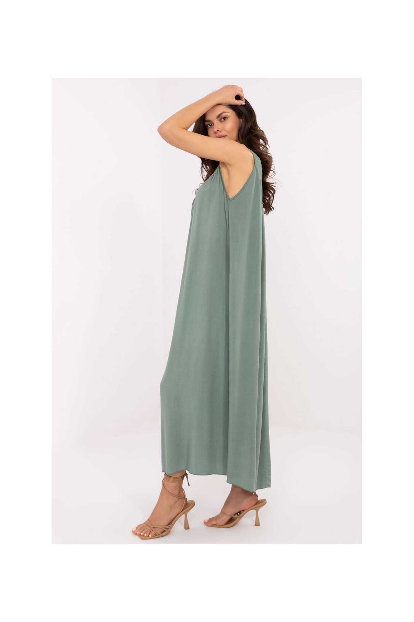 La robe d'été midi de style oversize est une proposition idéale pour des tenues quotidiennes et décontractées. Fabriquée en viscose légère et aérée, elle est parfaite pour les journées chaudes, offrant confort et commodité. Le tissu lisse et la coupe ample garantissent une liberté de mouvement totale, tandis que le décolleté en V souligne subtilement la ligne du cou et ajoute du charme féminin. La robe à fines bretelles, sans fermeture, est facile à enfiler et extrêmement pratique. C'est le modèle parfait pour l'été, léger, aéré et élégant dans sa simplicité.