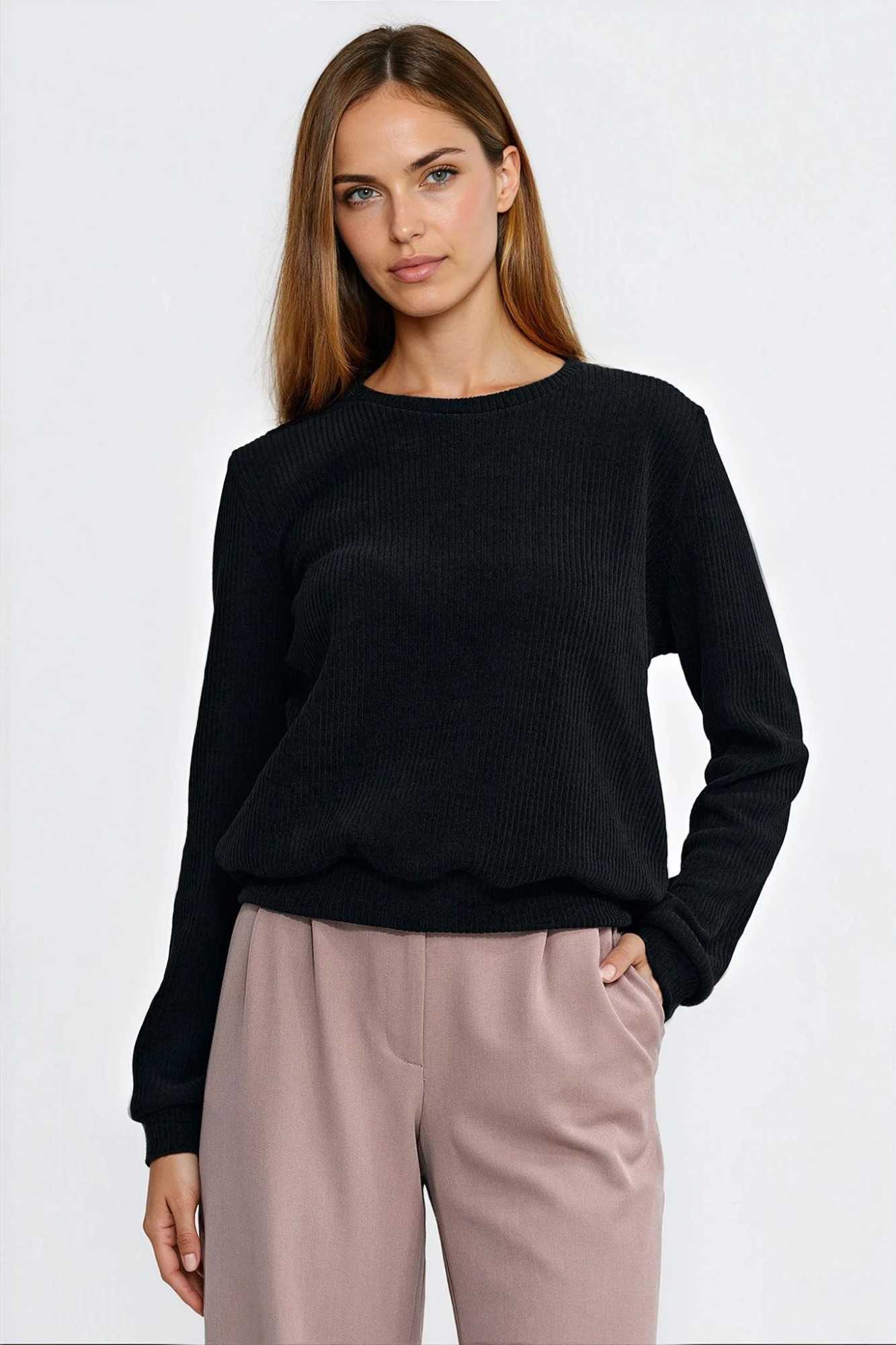 Sweat-shirt à manches longues en maille côtelée - noir - nife
